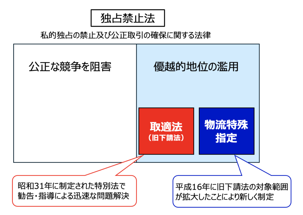 ①取適法(製造委託等に係る中小受託事業者に対する代金の支払の遅延等の防止に関する法律:旧下請法)の「特定運送委託」