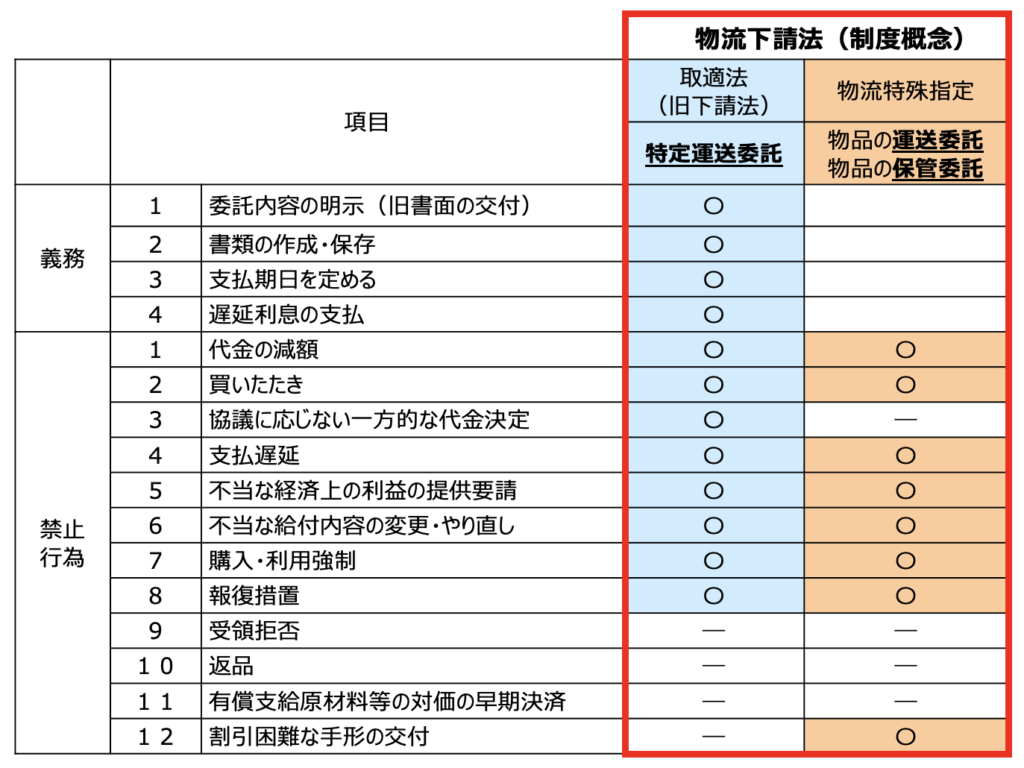 ①取適法(製造委託等に係る中小受託事業者に対する代金の支払の遅延等の防止に関する法律:旧下請法)の「特定運送委託」