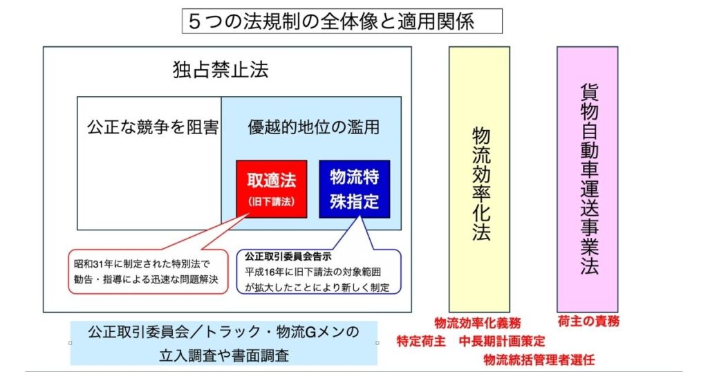 3つの法律:独占禁止法、物流効率化法、貨物自動車運送事業法(荷主関連部分)