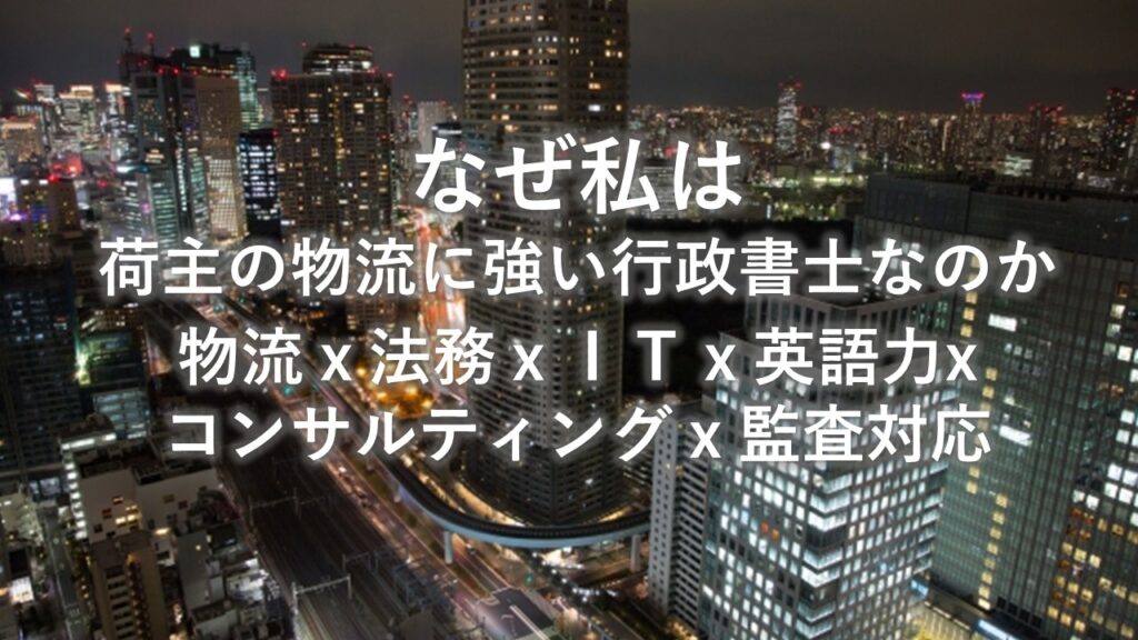 なぜ私は荷主の物流に強い行政書士なのか<物流×法務×IT×英語力×コンサルティング×監査対応>